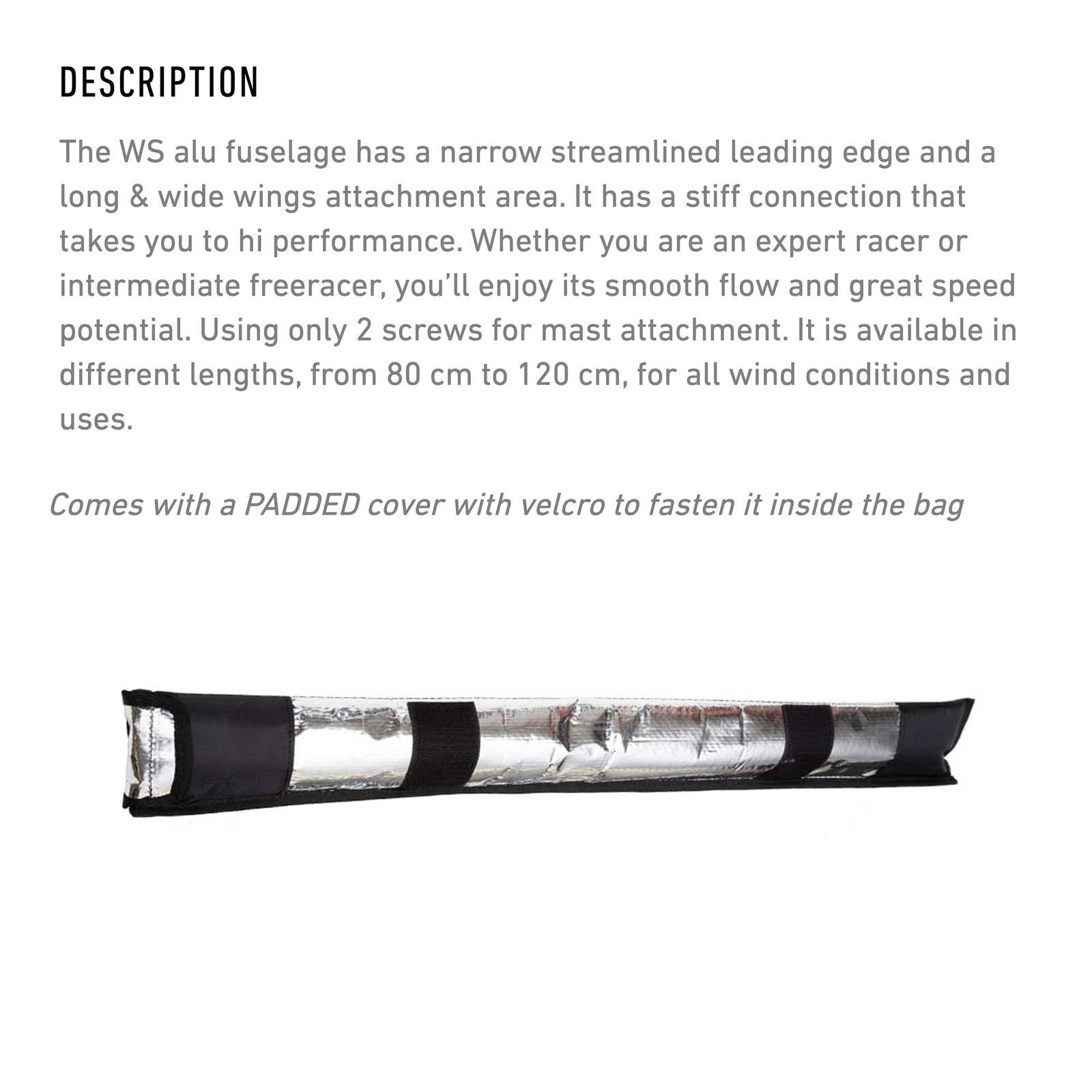 Discover the ultimate in hydrofoil technology with the Hydrofoil Fuselage Dynamic WS 80cm from RRD, designed for both expert racers and intermediate freeracers. This fuselage features a narrow streamlined leading edge paired with a long and wide wing attachment area, ensuring a stiff connection that enhances your performance on the water. Crafted from high-quality materials, this fuselage boasts durability while providing a smooth flow and impressive speed potential. Its innovative design requires only two screws for mast attachment, simplifying setup and maintenance. Available in various lengths from 80 to 120 cm, it adapts seamlessly to different wind conditions and user preferences, making it a versatile choice for any hydrofoiling adventure.