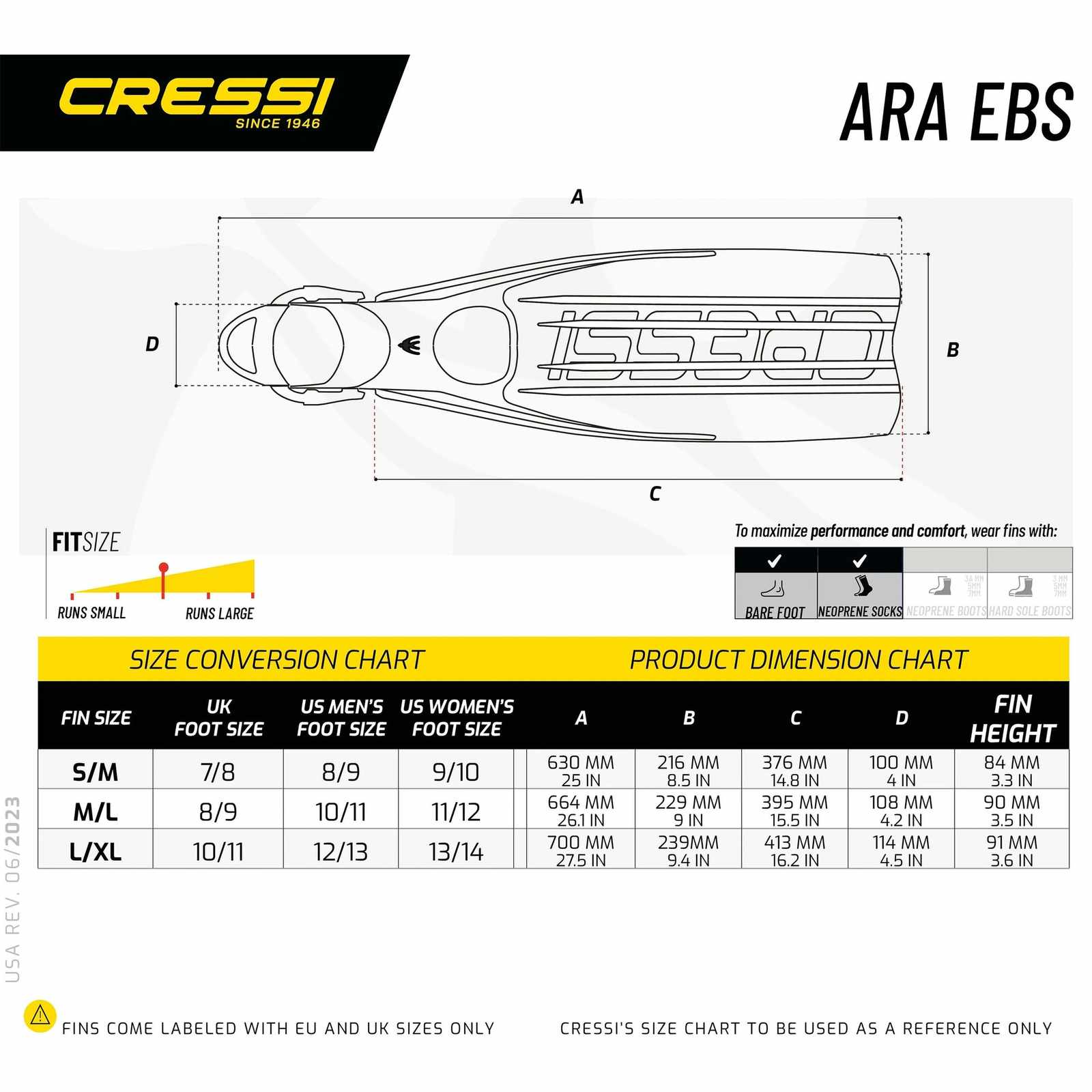 Diving Fins Master Ara Ebs Black L-XL-EU 44-47-UK 10-11 Cressi BE135544