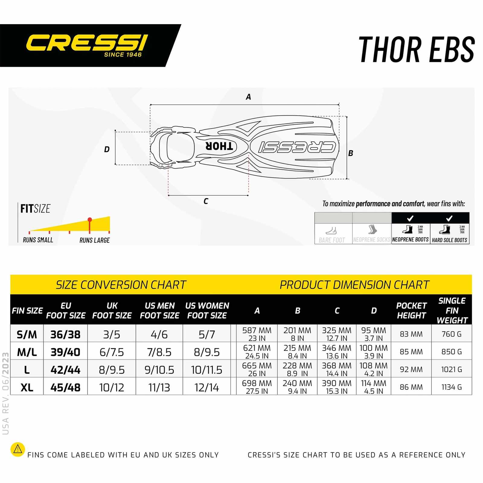 Recommended Use: The Diving Fins Thor Ebs are ideal for recreational and advanced divers seeking enhanced propulsion and comfort during their underwater excursions. These fins excel in a variety of environments, from serene reefs to challenging currents, ensuring that every dive is enjoyable and efficient. Pair them with neoprene booties for optimal warmth and protection on colder dives. Perfect for divers who prioritize both performance and user-friendly design.