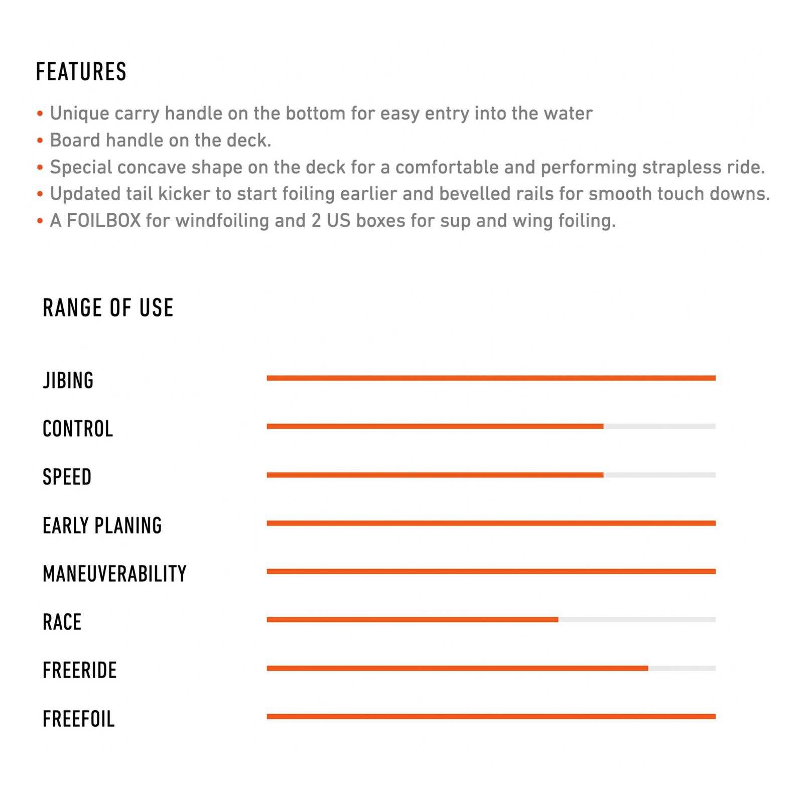 - Ideal für fortgeschrittene Fahrer und solche, die das Foiling erlernen möchten