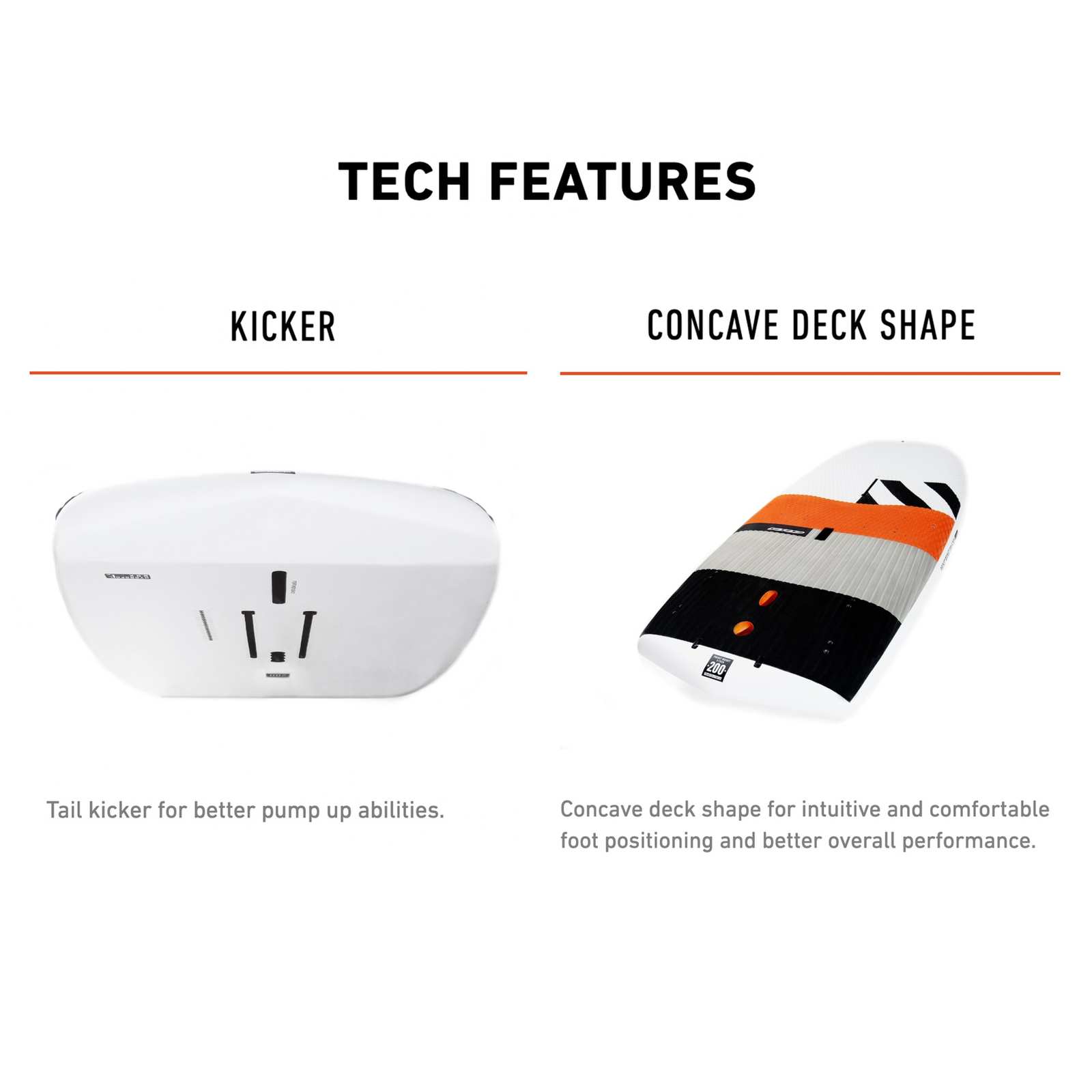 - Spezial-Konkave auf dem Deck für eine komfortable und leistungsstarke strapless Fahrt