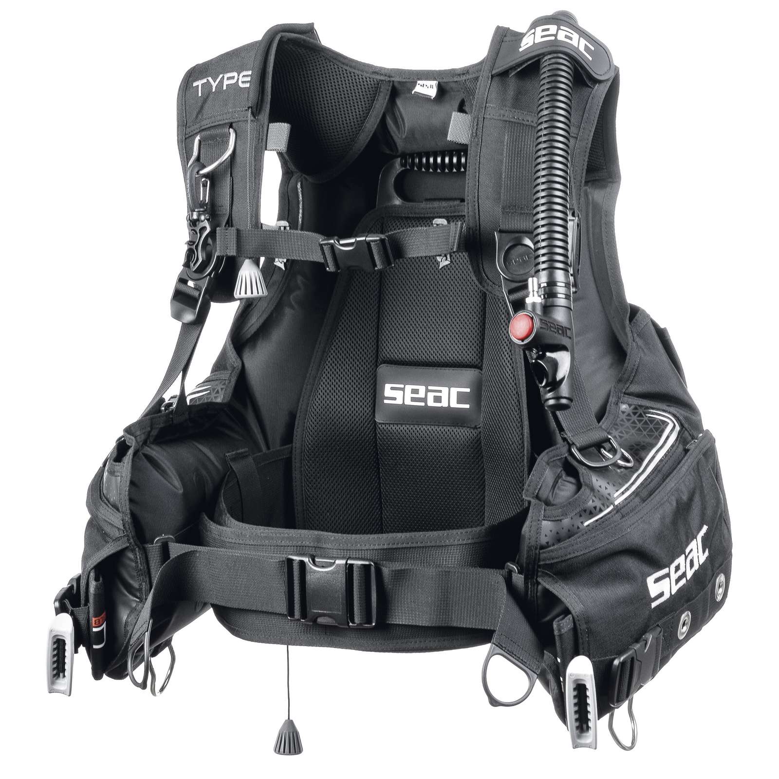 - Pięć stalowych D-ringów dla bezpieczeństwa i praktyczności podczas nurkowania.