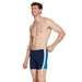 Key Features: - Made from EcoFit™ fabric for eco-friendly performance. - 78% recycled polyamide and 22% elastane for durability and stretch. - Excellent chlorine resistance ensures longevity. - Quick-drying technology for convenience after swimming. - Stylish navy and light blue color with a bold side stripe design. - Adjustable drawcord waist for a personalized fit. - Streamlined design enhances movement and reduces drag. - Perfect coverage with a 32cm leg length for comfort. - Ideal for both competitive swimming and training. - Resistant to oils and sunscreens for enhanced product life.