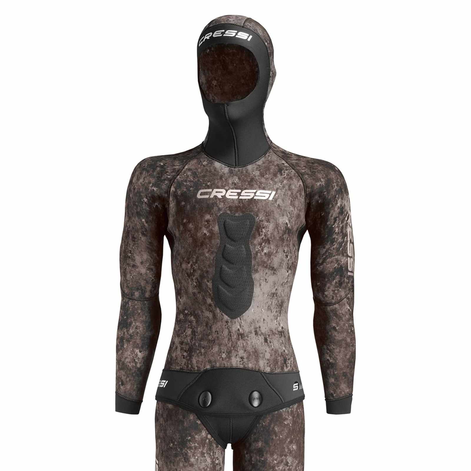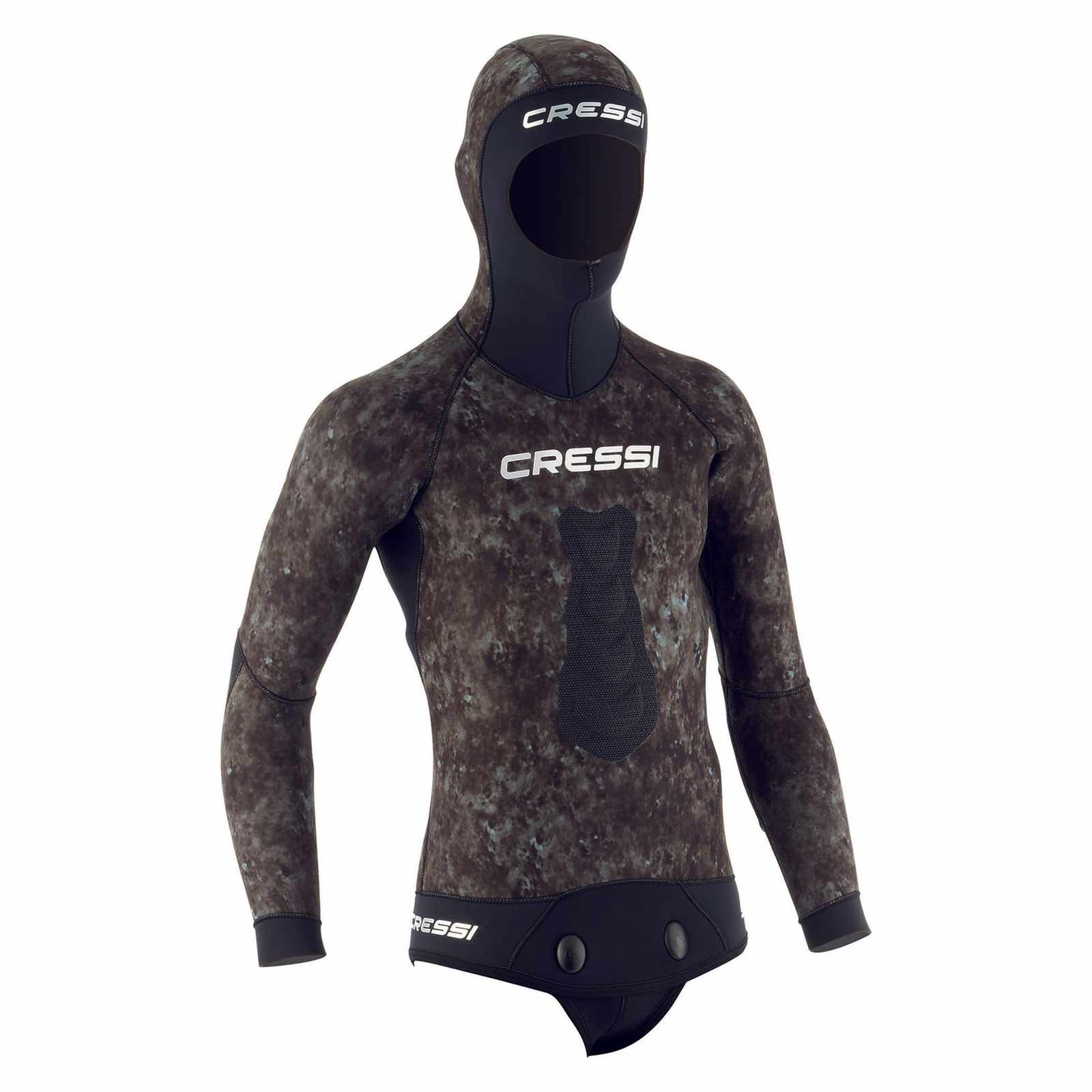 Designed specifically for the avid fisherman, the Tracina Ultraspan Wetsuit Top by Cressi is your go-to companion for blending seamlessly into underwater environments. Crafted from Cressi's exclusive Dark Digital SpecterPat camouflage, this wetsuit features a superior design that confuses aquatic prey and enhances stealth. Constructed using medium-density neoprene with ultraspan lining, it offers unmatched comfort and flexibility, making it suitable for extended use in the water. The innovative Aquastop system crafted from smooth interior neoprene minimizes water entry, while reinforced Powertex linings at high-stress areas enhance durability and performance. Ideal for shady Mediterranean settings, this wetsuit top is perfect for anything from spearfishing to deep-sea exploration, ensuring you stay comfortable and efficient on all your underwater adventures.